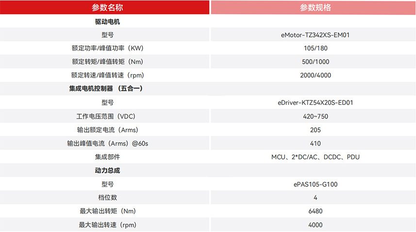 电机控制器集成了多项功能,包括MCU、DCDC转换器、双DCAC逆变器和PDU(功率分配单元),能够为车辆上装提供高达150kw的持续功率输出,满足高功率应用需求,增强了车辆的整体性能和适用性。